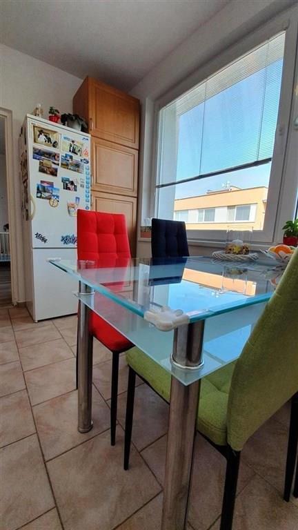 Ve Strakonicích, v klidné a okrajové části Sídliště 1. máje, prodej světlého a teplého bytu v zatepleném domě (dům po celkové revitalizaci) v 7. patře s výtahem. Nemovitost prošla celkovou rekonstrukcí před 6ti lety: zděné jádro, nová koupelna, WC, voda a odpady, podlahy s dlažbou a plovoucími podlahami, kuchyně na míru s vestavnými spotřebiči, částečně elektroinstalace, plastová okna se žaluziemi. V nabízeném, po dohodě s kupujícím, zůstane i částečné vybavení. Byt je o velikosti 66 m2 o dispozici 3+1 s komorou (kuchyň 12,40 m2, pokoj 20,70 m2, pokoj 12,30 m2, pokoj 8,20 m2, předsíň 5,70 m2, komora 1,80 m2, koupelna 2,60 m2, WC 1 m2, kóje 1 m2) , orientován na JZ. Poplatky cca 4.000,- Kč + elektřina. Vybavení bytu může zůstat a je v ceně. Hezké místo v blízkosti hřiště, školka, park, obchody, řeka Otava, příroda.... Doporučujeme prohlídku.