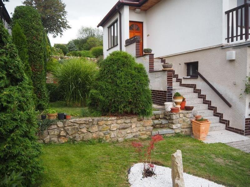 V klidné části města Volyně, prodej podsklepeného samostatně stojícího rodinného domu - zateplené dřevostavby s krásnou, udržovanou zahradou, hospodářskou budovou a zapuštěným venkovním bazénem. Celková výměra 925 m2, z toho zastavěná plocha a nádvoří 87 m2, zahrada 838 m2. Sestává se: ve sklepních prostorách - garáž, technická místnost: kotel na tuhá paliva, plynový kotel, elektrický bojler, sklad paliva, prádelna s pračkou a vanou, WC, spíž. Ve zvýšeném přízemí: po venkovním schodišti vstup do předsíně, dále chodba, šatna, samostatné WC, koupelna se sprchovým koutem, vstup do sklepních prostor, kuchyně, obývací pokoj s jídelnou, balkón. Po dřevěném schodišti se vstupuje do podkroví se dvěma pokoji a balkónem s výhledem na město a lesy s kapličkou. Dům zkolaudován v r. 1985 a majitelem byl průběžně rekonstruován: v 1997 nemovitost zateplena (kromě střechy), r. 2010 došlo k výměně oken, r. 2017 rekonstrukce komína, nové rozvody vody, odpadu, nová koupelna a nová vybavená kuchyňská linka, částečně vyměněny podlahové krytiny. V horní části zahrady, do které lze přijet po obecní cestě, se nachází podsklepené hospodářské stavení se dvěma místnostmi, udírnou a chlévem. Prostorná zahrada a příjezdová cesta v této části nabízí možnost výstavby jakékoli další nemovitosti. U domu zapuštěný bazén s filtrací a možností posezení. Prostorná, terasovitá a udržovaná zahrada je osázena okrasnými keři a částečně ovocnými stromy. K domu se přijíždí po místní komunikaci, je napojen na rozvod elektrické energie, veřejný vodovod, kanalizaci a plyn. Ohřev teplé vody elektrickým bojlerem. Vytápět lze buď plynovým kotlem nebo kotlem na tuhá paliva. Nemovitost se, dle domluvy, nabízí s veškerým vybavením. Je tu tak možnost okamžitého bydlení. PENB nebyl dodán, proto uvádíme třídu G. Klidné a pohodové místo s výhledy ve městě Volyně s veškerou občanskou vybaveností. Doporučujeme prohlídku.