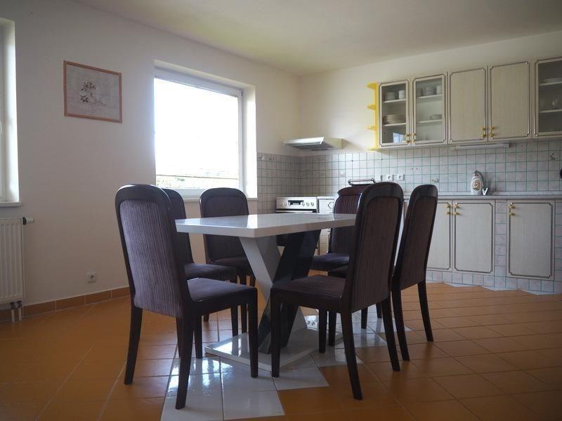 Ve Vimperku, v okrajové části města, pronájem velkého, kompletně zrekonstruovaného apartmánu o velikosti 3+1, balkón a garáž. Výměra nabízeného je 222 m2, včetně garáže a balkónu. V přízemí garáž ze které lze vejít do obytného, jinak do apartmánu je samostatný vstup do chodby, po dřevěných schodech od obytných částí. Prostorná zařízená kuchyně, velký obývací pokoj s balkónem a pokoji se samostatnými vstupy, nabízí každému maximální soukromí. Velká koupelna má rohovou vanu a mnoho úložného prostoru. kuchyňským koutem a jídelnou, sprchovým koutem s umyvadlem a WC. Nová kuchyňská linka je vybavená myčkou, sporákem s troubou a pračkou. Pokoje jsou vybaveny postelemi a skříněmi. U domu lze bezplatně parkovat. Podlahy jsou pokryty dlažbou. Byt má vlastní vodoměr a elektroměr. Ohřev teplé vody elektrickým bojlerem, vytápění je zajištěno kotlem v domě s obsluhou. Okolí domu je obklopené lesními porosty a travinami. Místo je klidné s možností hezkých procházek v přírodě s výhledem na město. Možnost využívat venkovní bazén. Nájemné včetně topení 30.000,- Kč + 6.600,- Kč zálohy na energie, majitel požaduje kauci ve výši 1 nájmu. Provize RK 1x měsíční nájem. PENB nebyl dodán, proto uvádíme třídu G. Doporučujeme prohlídku.